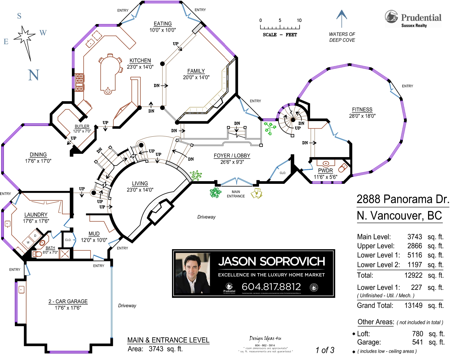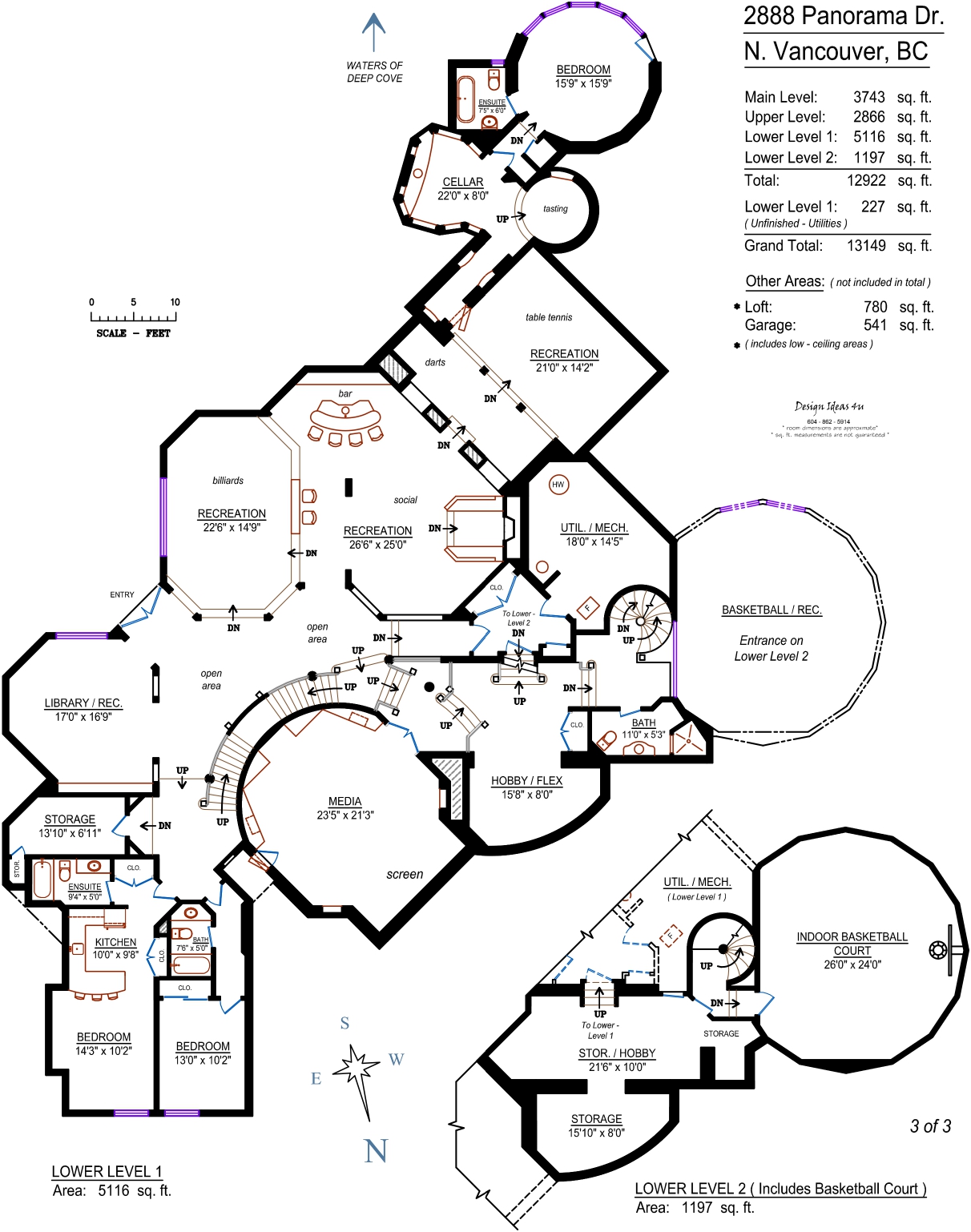 A Vancouver landmark estate! This magnificent Waterfront estate at the end of Panorama Drive in Deep Cove is situated on over ½ an acre and has views that will literally take your breath away. Perched above the sea and Indian Arm’s most dramatic cliff and rock formations, this oceanfront residence is wrapped in 270 degrees of spectacular ocean and coastline views. Serene in setting, the estate is extremely private, creating the effect of being on your own private oasis - yet offering an ideal Village location that can't be duplicated for convenience or beauty. Nearly every room in this 7 bedroom, 9 bathroom home captures spellbinding views with large picture windows and expansive adjoining terraces on the oceanfront. Exquisitely crafted, this luxurious residence took six painstaking years to perfect and offers 12,922 sq. ft. of the finest quality and detail you have ever seen! On 3 levels of living, an intricate blend of custom milled beam work, slate roofing, crafted woodwork, natural stone and hardwoods have been beautifully amalgamated to create this stunning work of art. The main floor features open lounge areas, vaulted ceilings, timber and steel beam construction and roaring stone fireplaces, a custom Chef’s kitchen with breakfast bar, eating area and adjacent family room, grand dining area and a private study. The upper level offers gorgeous ensuited bedrooms including an incredible master suite with separate sitting area and unparalleled ocean views. The lower level is a kid's paradise including a custom indoor basketball court, a state-of-the-art automated home theatre, a fabulous billiard lounge with adjacent saloon and wet bar, games room with professional dart board and air hockey arena, as well as the most incredible hidden passage to an 'Olde World' wine cellar and seaside guest accommodation. I am not kidding when I say this is the most impressive home you will ever see! All principal rooms open out to intimate oceanfront covered patios and a built-in barbeque centre, manicured lawns and gardens and a roaring outdoor fireplace offering complete privacy. This home offers a casual elegance and is simply one of Vancouver’s most stunning Waterfront Estates!